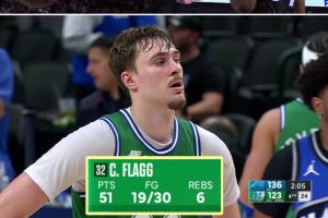 弗拉格今日砍下51分 成为自09年詹宁斯后首位砍下50+的新秀