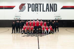 杨瀚森则是回到了开拓者拍摄了全家福~