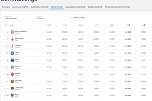 近5个赛季欧足联积分系数:拜仁反超皇马升至第一,利物浦第三