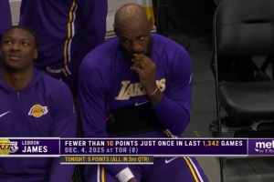 下一篇: 不常见!詹姆斯生涯第7次半场0分&第3次上半场挂蛋 上一次在去年